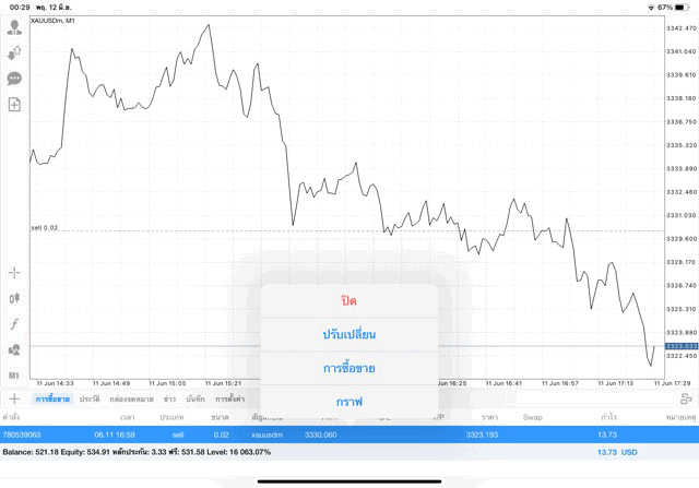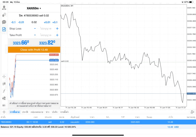 การเทรด XAUUSDm (ทองคำ) 0.02 lot แอพ Mt4