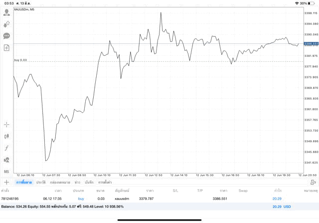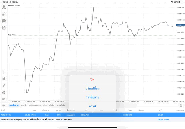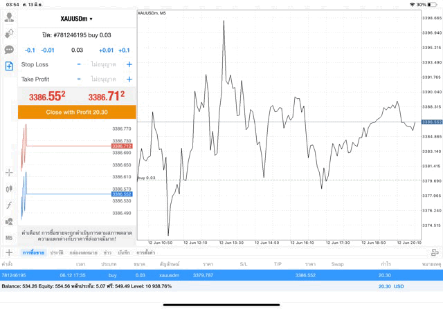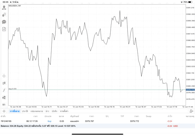 การเทรด XAUUSDm (ทองคำ) 0.03 lot แอพ Mt4