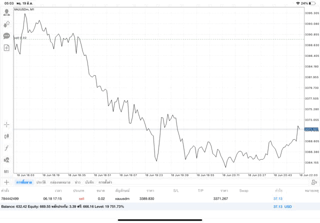 +37.13$ ถ้าเปิดการเทรดครั้งนี้ไว้ต่อ ผลการลงทุนยังเปลี่ยนแปลงได้ อาจบวก อาจลบ บวกเพิ่ม ลบเพิ่ม