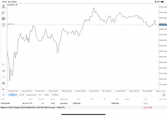 การเทรด XAUUSDm (ทองคำ) 0.02 lot แอพ Mt4