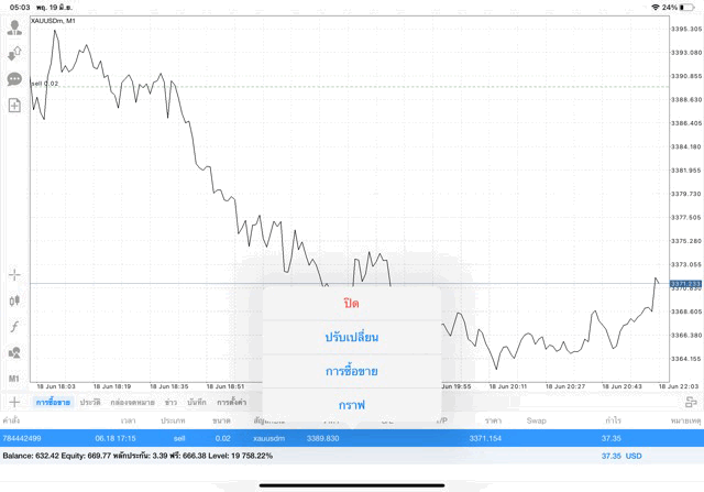 ติดลบก่อนนะ เมื่อเวลาผ่านไป ผลการลงทุนอาจจะกลับไปบวก หรือ อาจติดลบเพิ่มขึ้น อาจได้กำไร มาก น้อย หรือ ขาดทุน มาก น้อย XAUUSDm หมายถึง ทองคำ (XAU) แลกเปลี่ยน เงินดอลลาร์อเมริกา (USD)