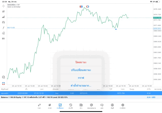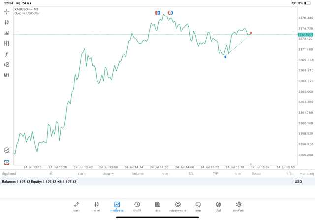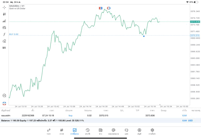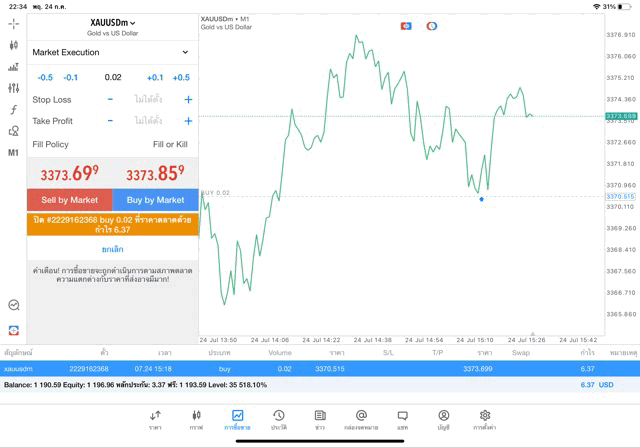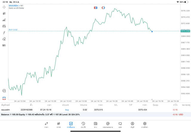 การเทรด XAUUSDm (ทองคำ) 0.01 lot แอพ MT5