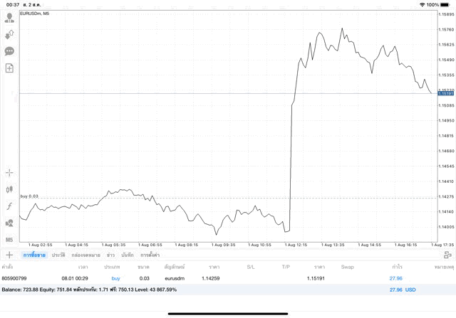 +27.96$ ถ้าเปิดการเทรดครั้งนี้ไว้ต่อ ผลการลงทุนยังเปลี่ยนแปลงได้ อาจบวก อาจลบ บวกเพิ่ม ลบเพิ่ม