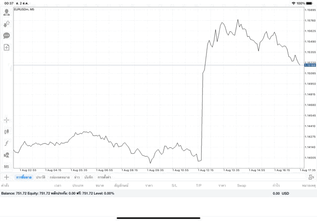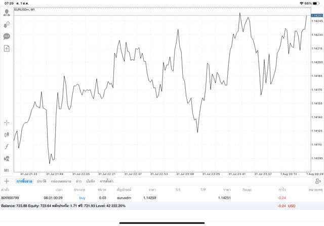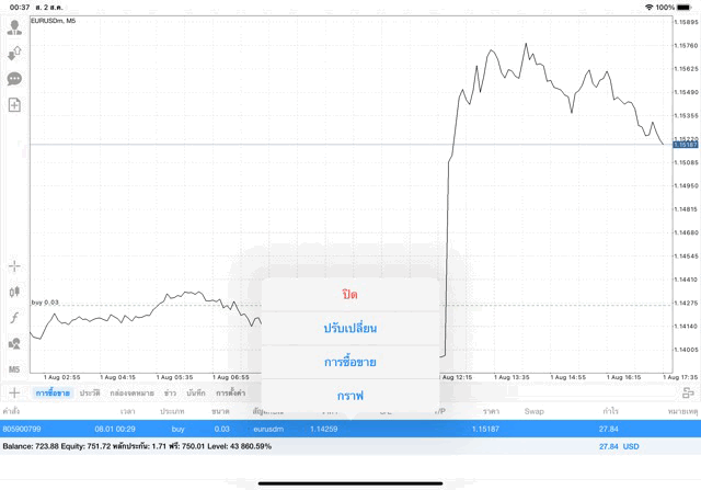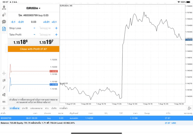 การเทรด Forex EURUSDm 0.03 lot แอพ MT4