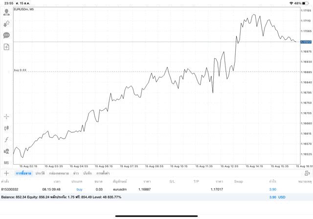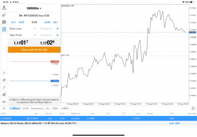 +3.90$ ถ้าเปิดการเทรดครั้งนี้ไว้ต่อ ผลการลงทุนยังเปลี่ยนแปลงได้ อาจบวก อาจลบ บวกเพิ่ม ลบเพิ่ม