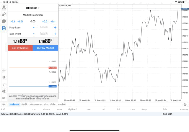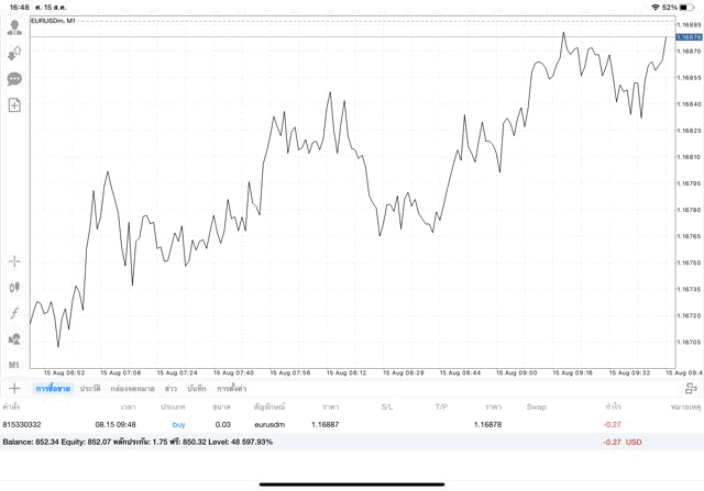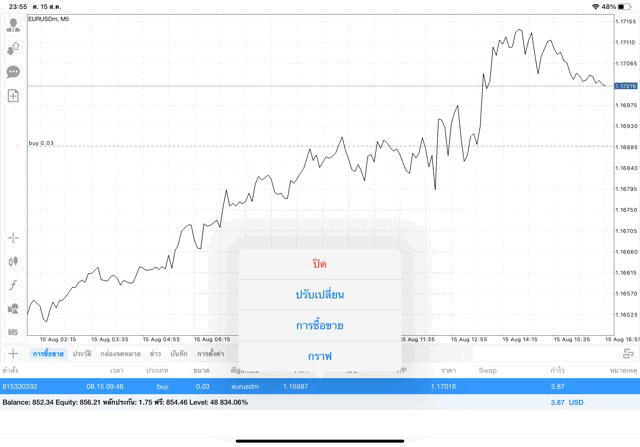 การเทรด Forex EURUSDm 0.03 lot แอพ MT4