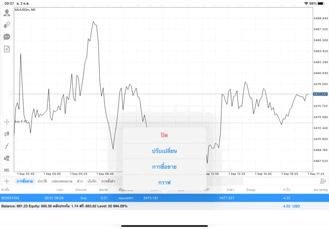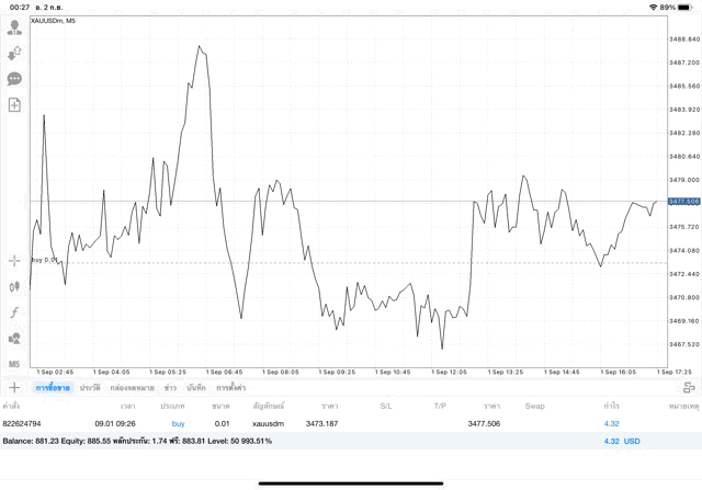 ติดลบก่อนนะ เมื่อเวลาผ่านไป ผลการลงทุนอาจจะกลับไปบวก หรือ อาจติดลบเพิ่มขึ้น อาจได้กำไร มาก น้อย หรือ ขาดทุน มาก น้อย XAUUSDm หมายถึง ทองคำ (XAU) แลกเปลี่ยน เงินดอลลาร์อเมริกา (USD)