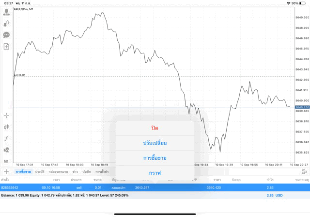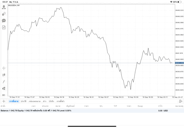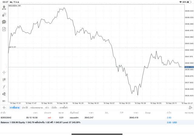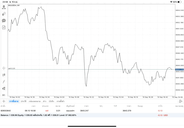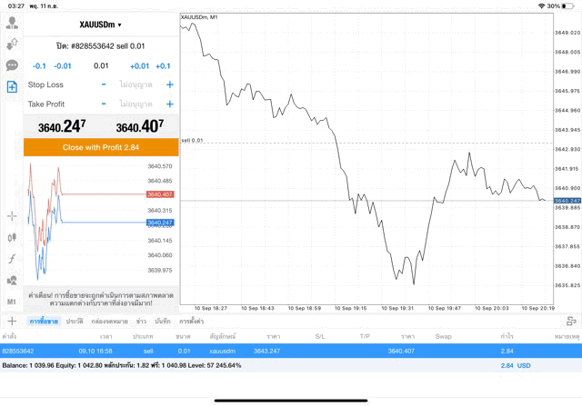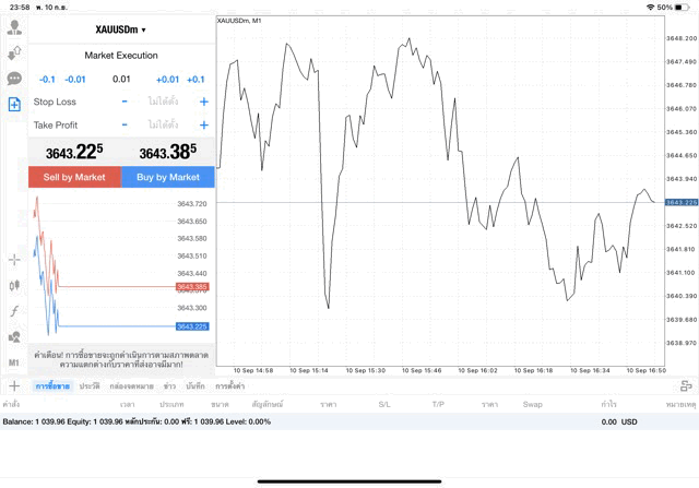 การเทรด XAUUSDm (ทองคำ) 0.01 lot แอพ Mt4
