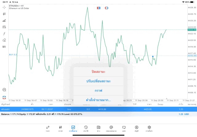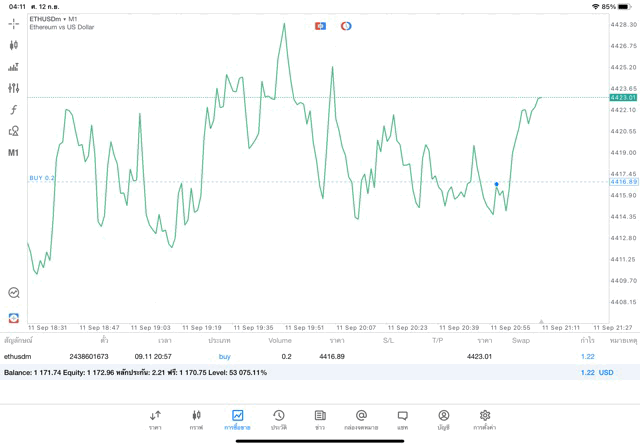 การเทรด Crypto ETHUSD 0.2 lot แอพ MT5