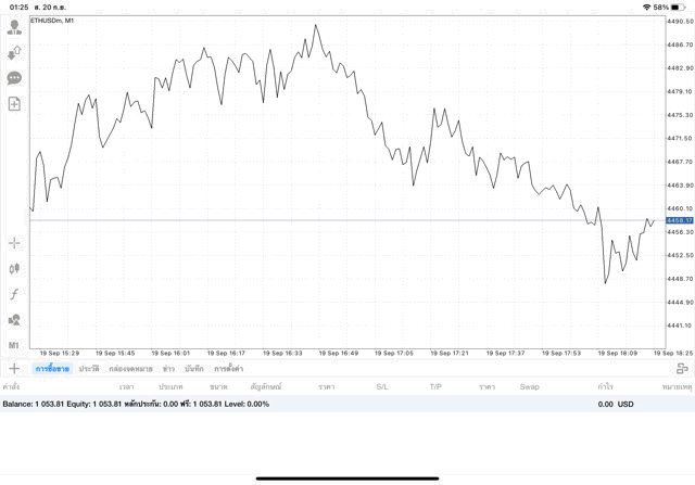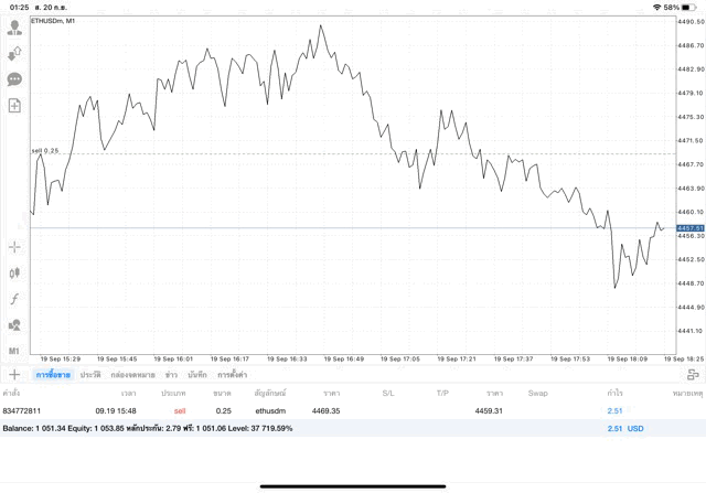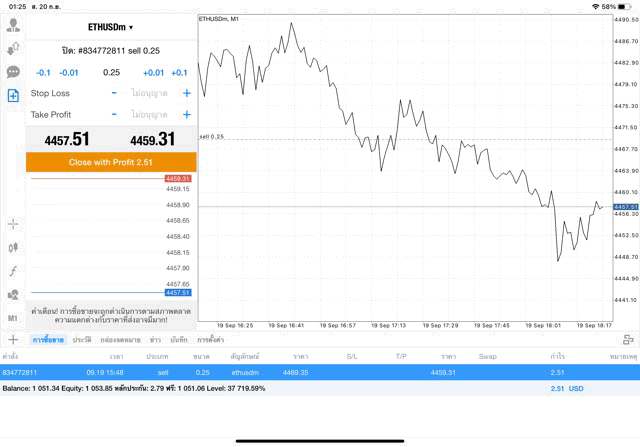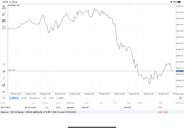 การเทรด Crypto ETHUSD 0.25 lot แอพ MT4