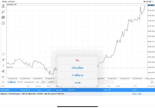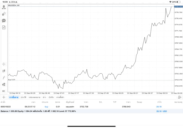 +28.18 $ ถ้าเปิดการเทรดครั้งนี้ไว้ต่อ ผลการลงทุนยังเปลี่ยนแปลงได้ อาจบวก อาจลบ บวกเพิ่ม ลบเพิ่ม