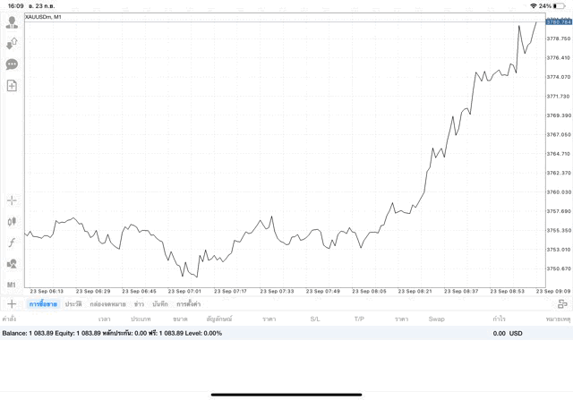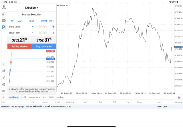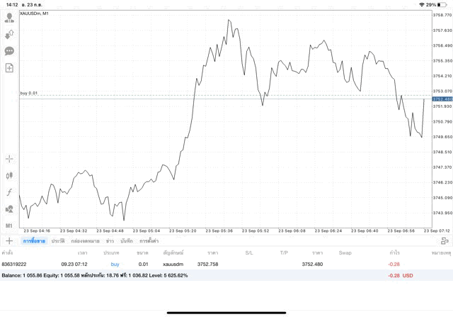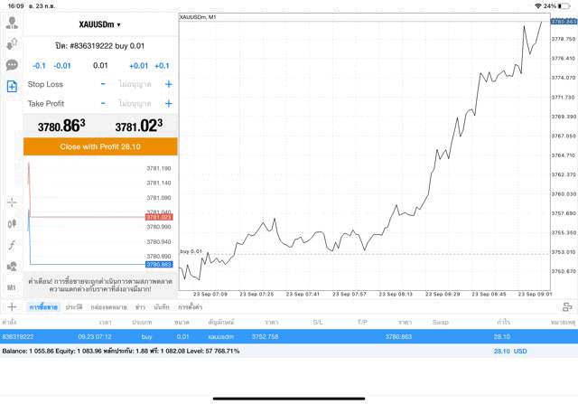 การเทรด XAUUSDm (ทองคำ) 0.01 lot แอพ Mt4