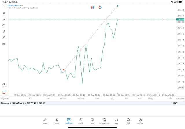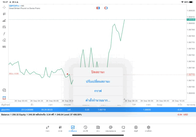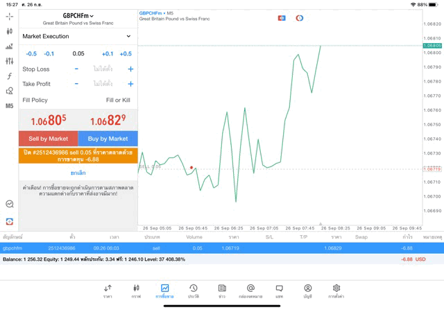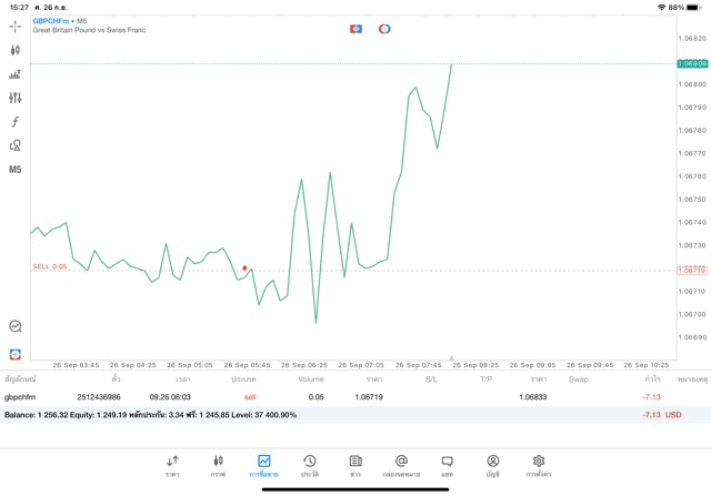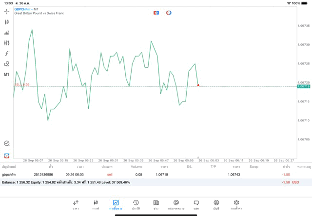 การเทรด Forex GBPCHFm 0.05 lot แอพ MT5