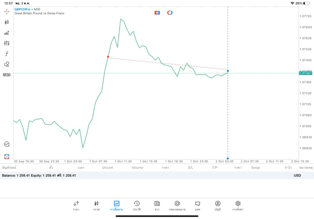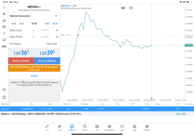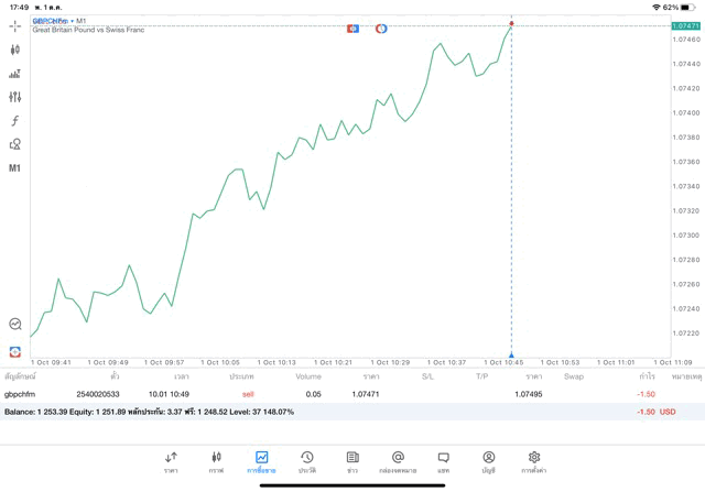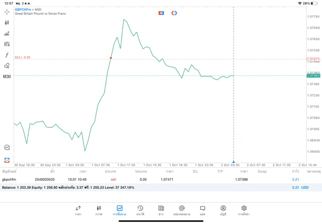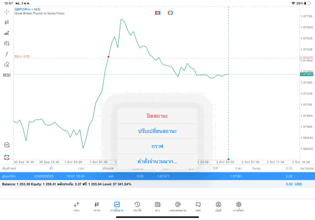 การเทรด Forex GBPCHFm 0.05 lot แอพ MT5