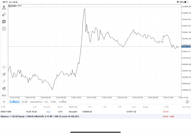 ติดลบก่อนนะ เมื่อเวลาผ่านไป ผลการลงทุนอาจจะกลับไปบวก หรือ อาจติดลบเพิ่มขึ้น อาจได้กำไร มาก น้อย หรือ ขาดทุน มาก น้อย BTCUSDm หมายถึง เงินดิจิตอลบิทคอยน์ (BTC) แลกเปลี่ยน เงินดอลลาร์อเมริกา (USD) ส่วน m ต่อท้ายหมายถึง บัญชีนี้เป็นบัญชีเทรดแบบ Standard exness