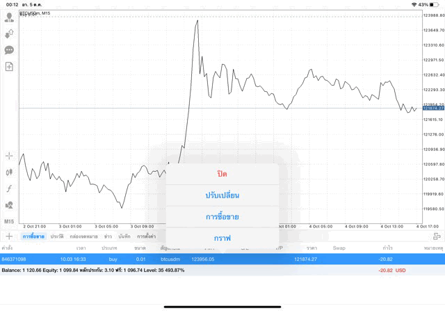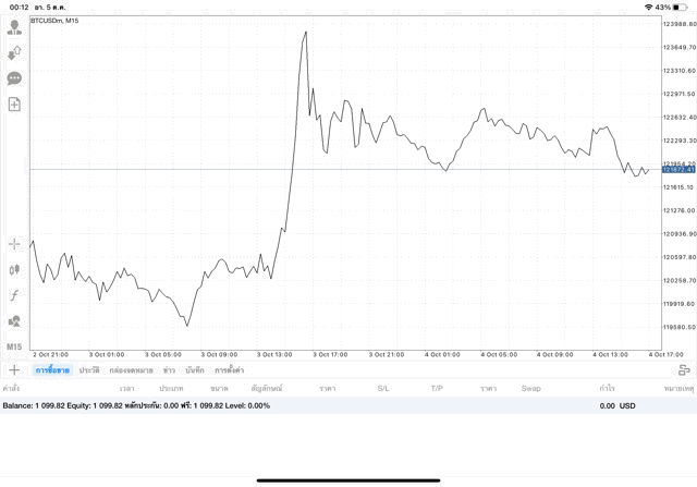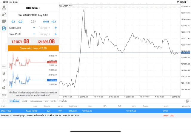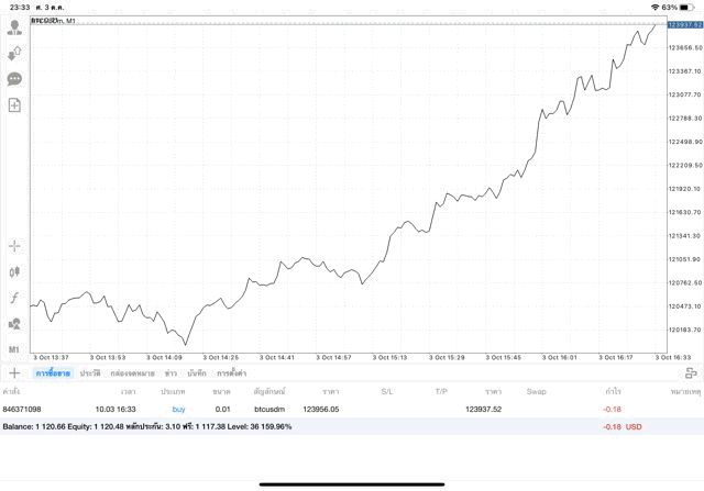 การเทรด Crypto BTCUSD 0.01 lot แอพ MT4