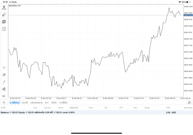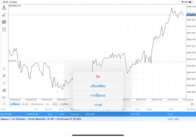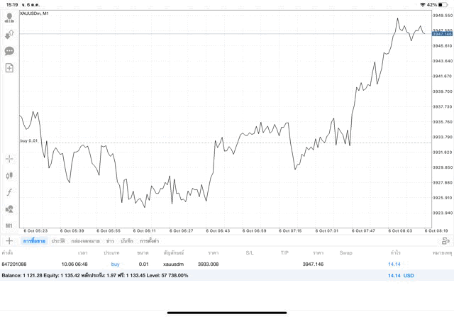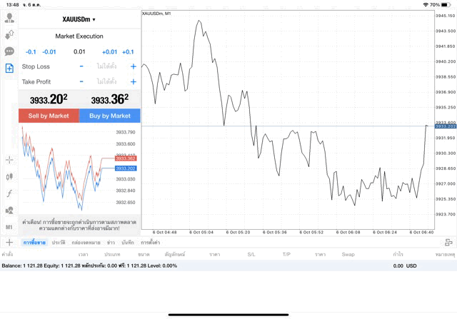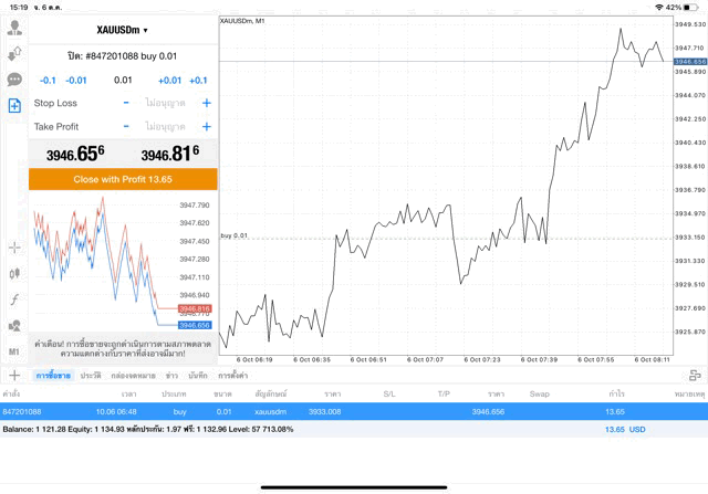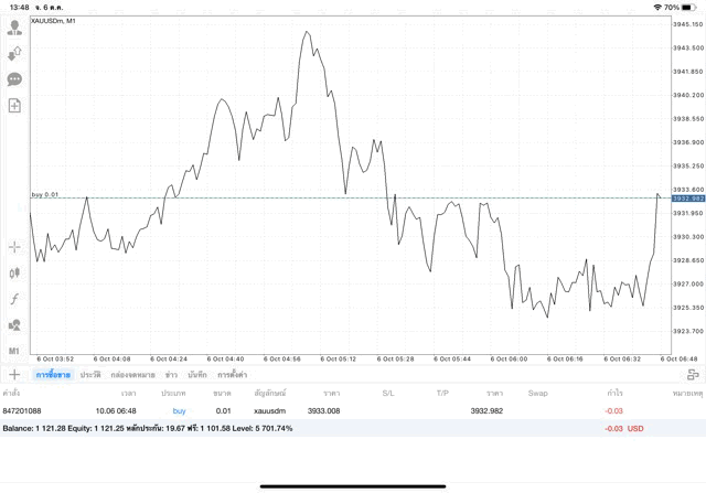 การเทรด XAUUSDm (ทองคำ) 0.01 lot แอพ Mt4