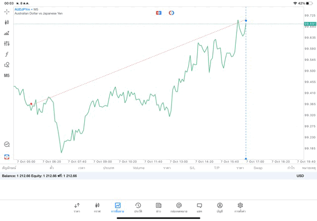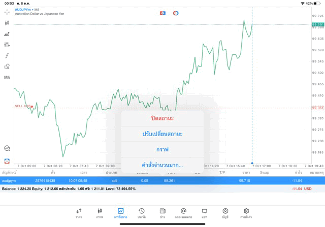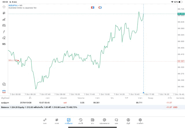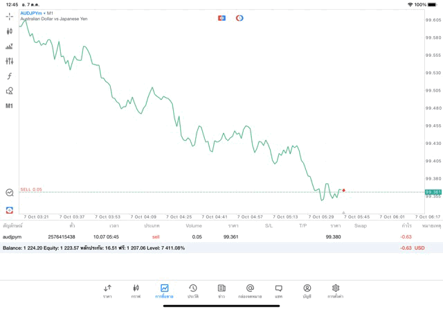 การเทรด Forex AUDJPYm 0.05 lot แอพ MT5