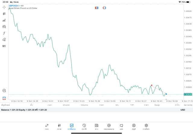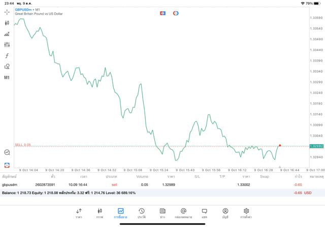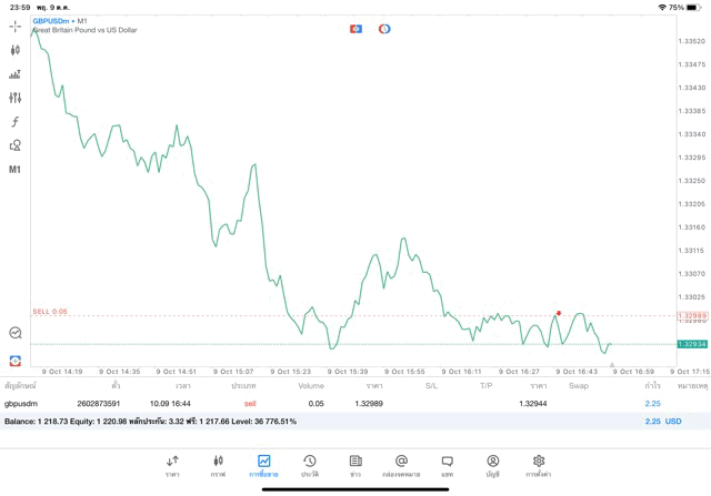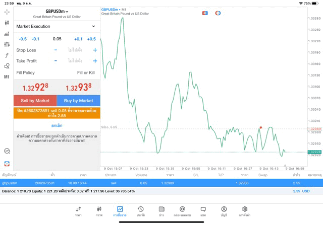 การเทรด Forex GBPUSDm 0.05 lot แอพ MT5