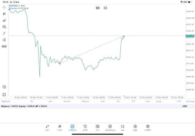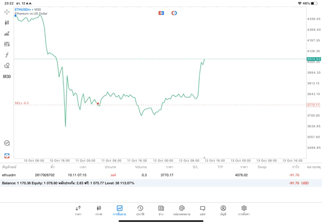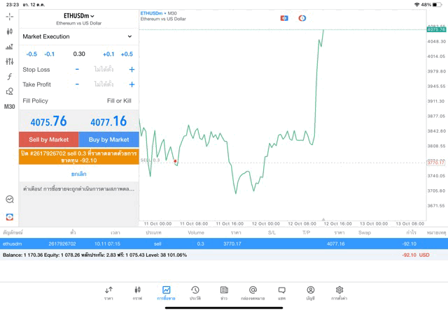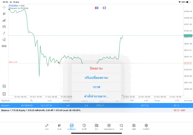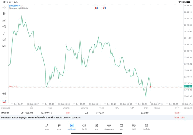 การเทรด Crypto ETHUSD 0.3 lot แอพ MT5