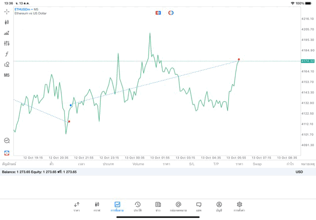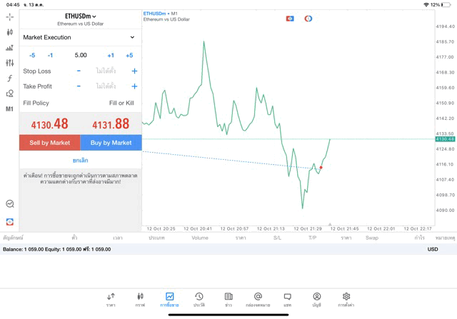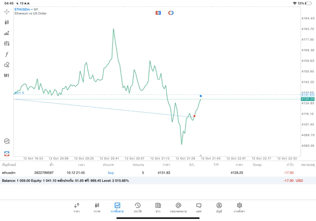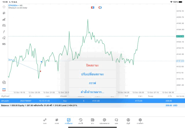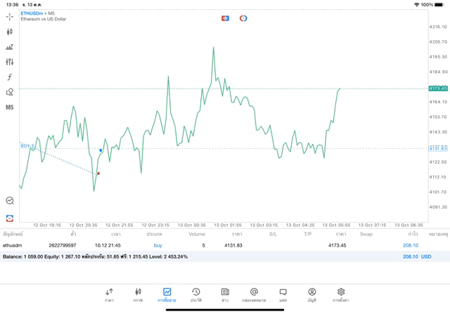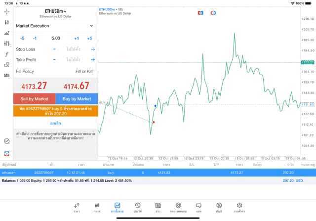 การเทรด Crypto ETHUSD 5.00 lot แอพ MT5