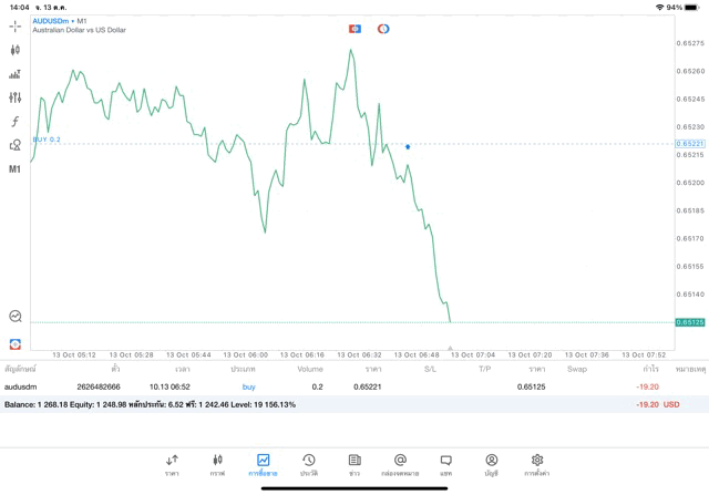 -19.20$ ถ้าเปิดการเทรดครั้งนี้ไว้ต่อ ผลการลงทุนยังเปลี่ยนแปลงได้ อาจบวก อาจลบ บวกเพิ่ม ลบเพิ่ม