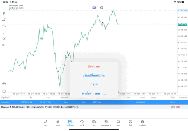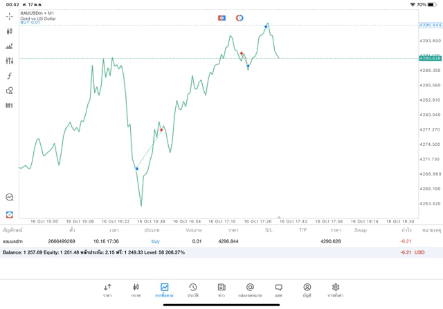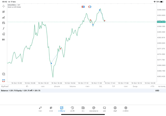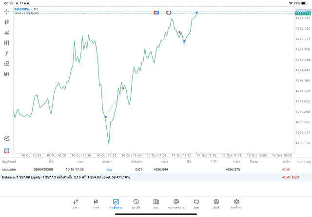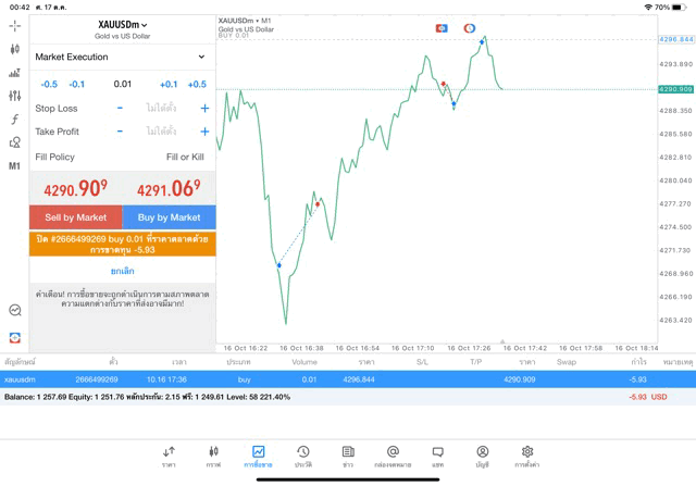 การเทรด XAUUSDm (ทองคำ) 0.01 lot แอพ MT5