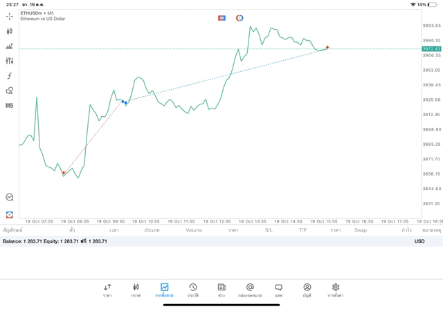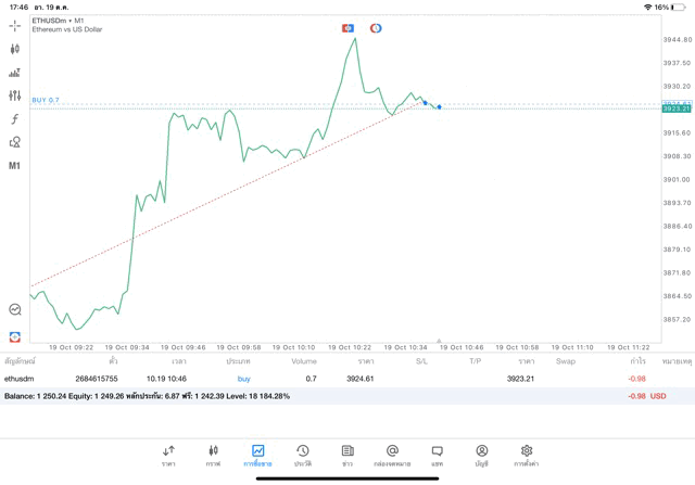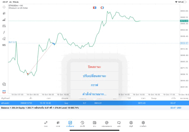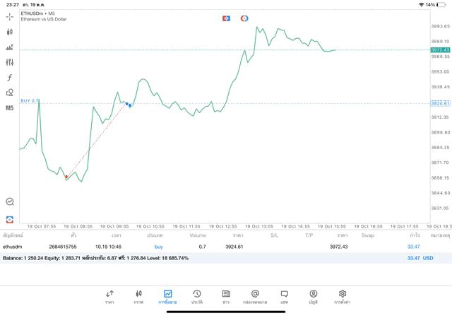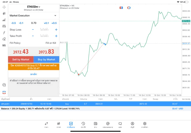 การเทรด Crypto ETHUSD 0.7 lot แอพ MT5