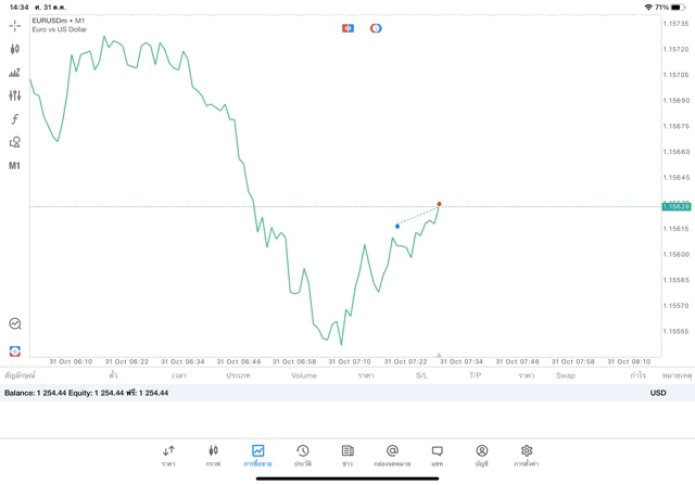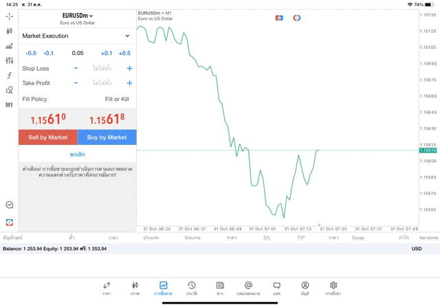 การเทรด Forex EURUSD บน แอพเล่นหุ้น MT5 เริ่มขึ้นแล้ว ติดลบก่อนนะ เมื่อเริ่มต้นเทรด เมื่อเวลาผ่านไป ผลการลงทุนอาจจะกลับไปบวก หรือ อาจติดลบเพิ่มขึ้น อาจได้กำไร มาก น้อย หรือ ขาดทุน มาก น้อย EURUSDm หมายถึง เงินยูโร (EUR) แลกเปลี่ยน เงินดอลลาร์อเมริกา (USD) ส่วน m ต่อท้ายหมายถึง บัญชีนี้เป็นบัญชีเทรดแบบ Standard exness