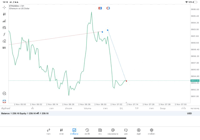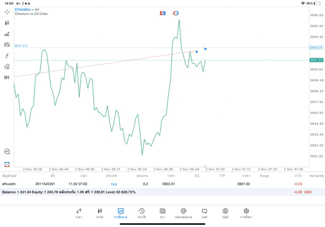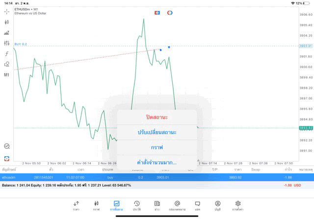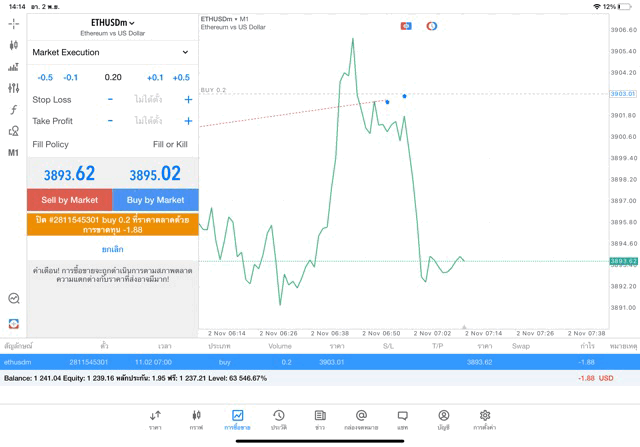 การเทรด Crypto ETHUSD 0.30 lot แอพ MT5