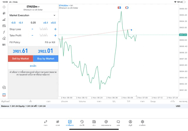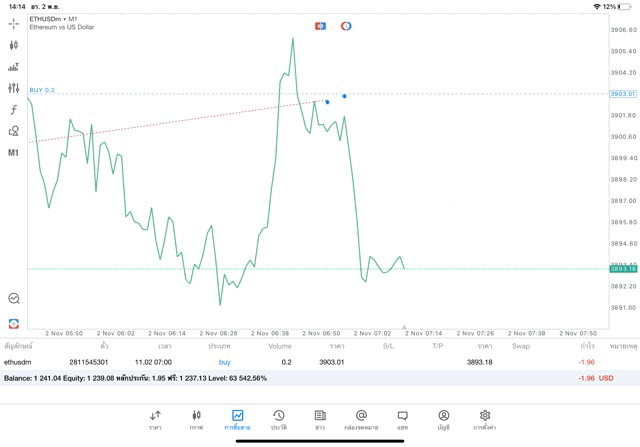 ติดลบก่อนนะ เมื่อเวลาผ่านไป ผลการลงทุนอาจจะกลับไปบวก หรือ อาจติดลบเพิ่มขึ้น อาจได้กำไร มาก น้อย หรือ ขาดทุน มาก น้อย ETHUSDm หมายถึง เงินดิจิตอลอีเธอเรียม (Ethereum) หรือ (ETH) แลกเปลี่ยน เงินดอลลาร์อเมริกา (USD) ส่วน m ต่อท้ายหมายถึง บัญชีนี้เป็นบัญชีเทรดแบบ Standard exness