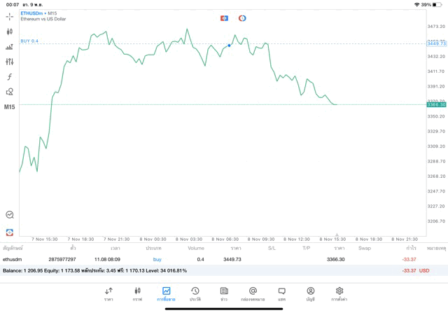 ติดลบก่อนนะ เมื่อเวลาผ่านไป ผลการลงทุนอาจจะกลับไปบวก หรือ อาจติดลบเพิ่มขึ้น อาจได้กำไร มาก น้อย หรือ ขาดทุน มาก น้อย ETHUSDm หมายถึง เงินดิจิตอลอีเธอเรียม (Ethereum) หรือ (ETH) แลกเปลี่ยน เงินดอลลาร์อเมริกา (USD) ส่วน m ต่อท้ายหมายถึง บัญชีนี้เป็นบัญชีเทรดแบบ Standard exness