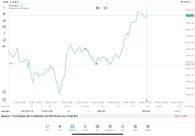 -248.71 $ ถ้าเปิดการเทรดครั้งนี้ไว้ต่อ ผลการลงทุนยังเปลี่ยนแปลงได้ อาจบวก อาจลบ บวกเพิ่ม ลบเพิ่ม