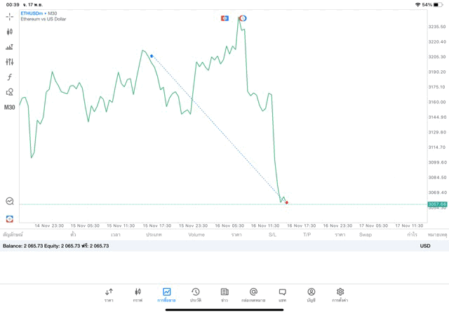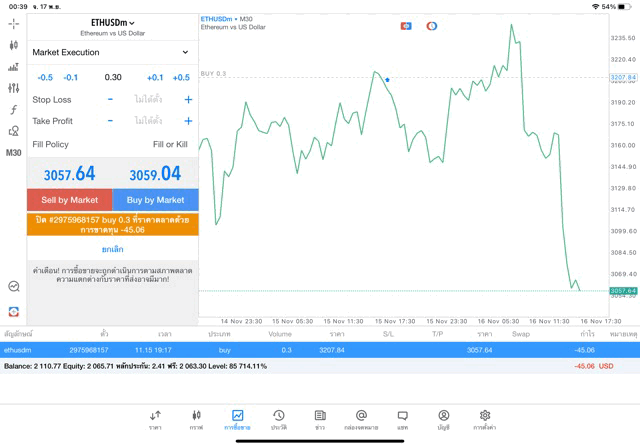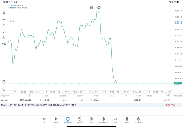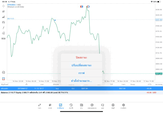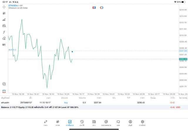 การเทรด Crypto ETHUSD 0.3 lot แอพ MT5