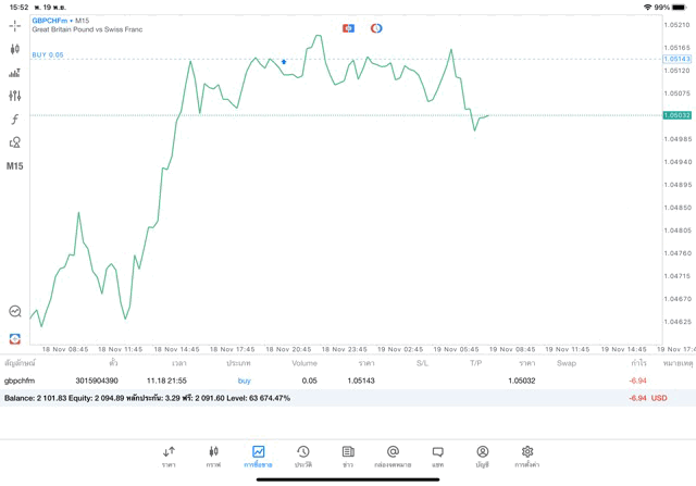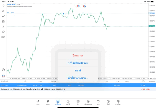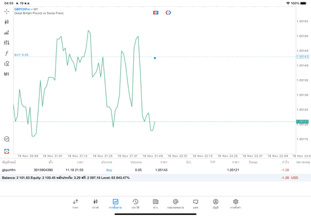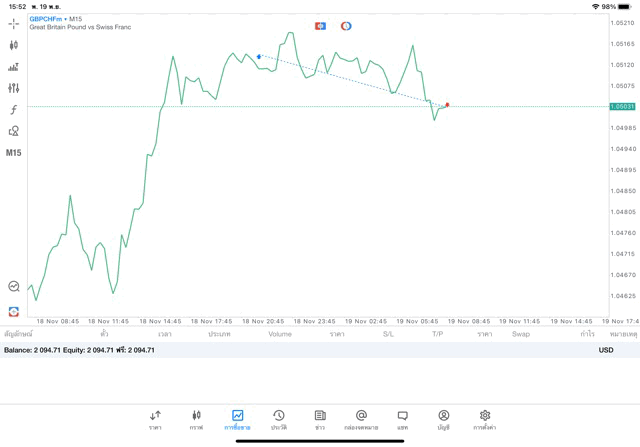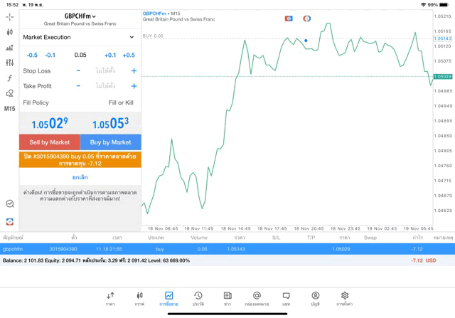 การเทรด Forex GBPCHFm 0.05 lot แอพ MT5