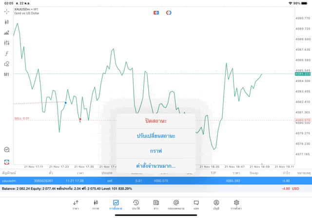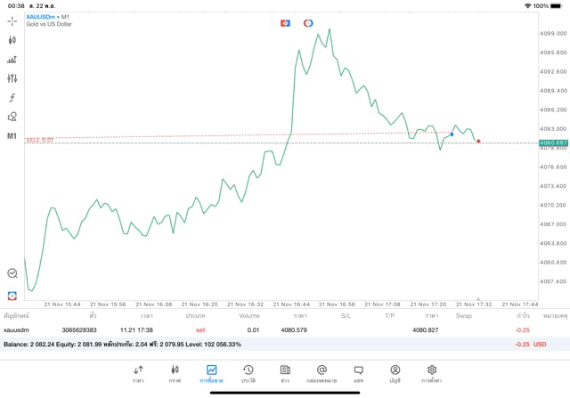 การเทรด XAUUSDm (ทองคำ) 0.01 lot แอพ MT5