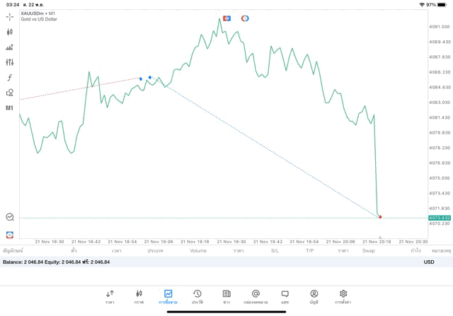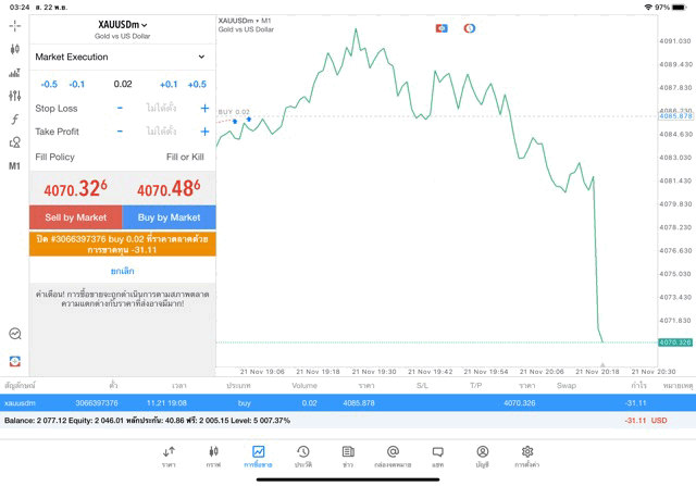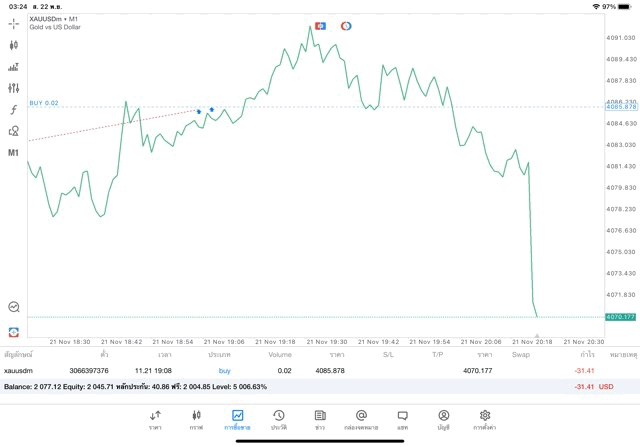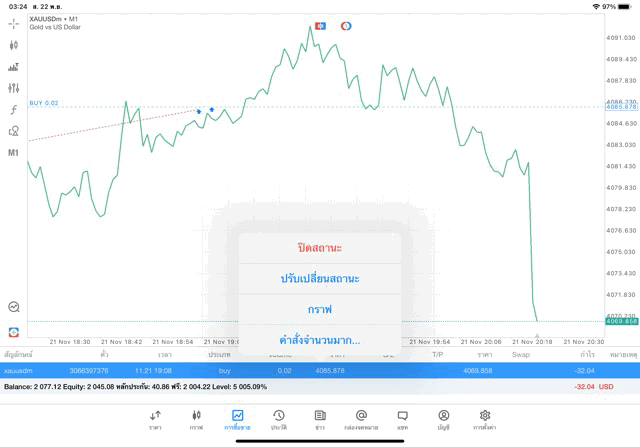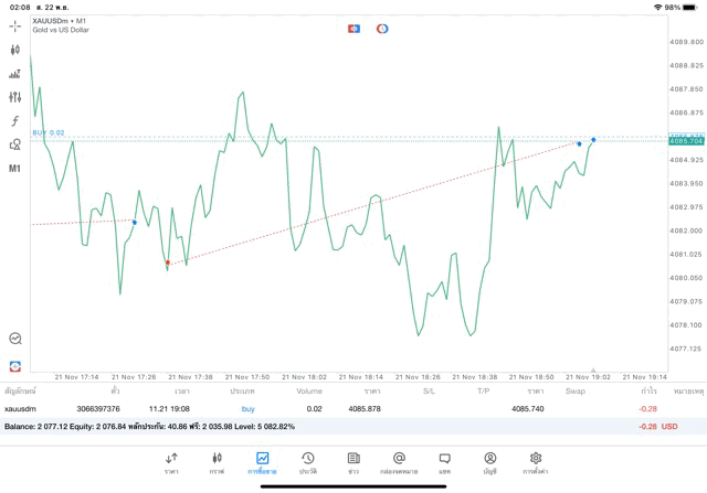 การเทรด XAUUSDm (ทองคำ) 0.02 lot แอพ MT5