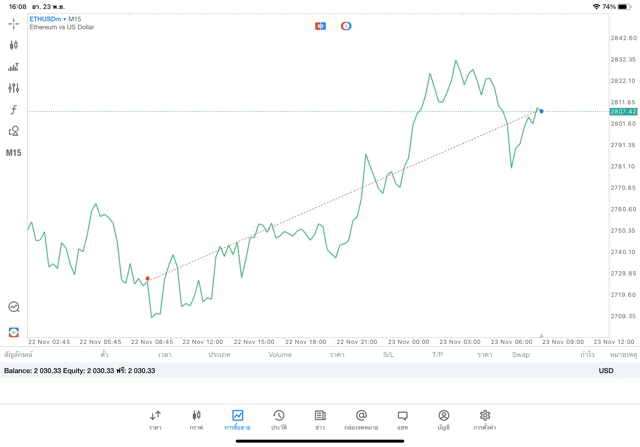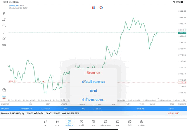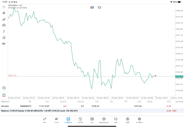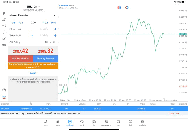 การเทรด Crypto ETHUSD 0.2 lot แอพ MT5