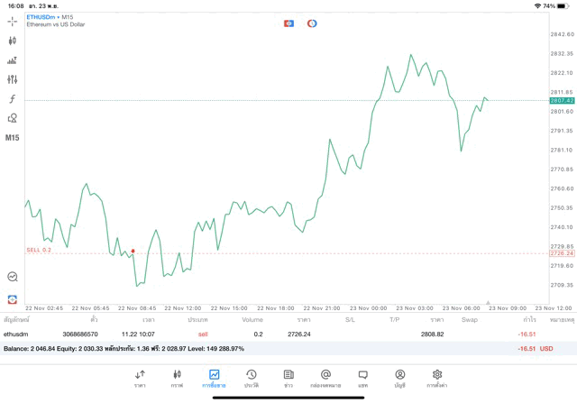 -16.51 $ ถ้าเปิดการเทรดครั้งนี้ไว้ต่อ ผลการลงทุนยังเปลี่ยนแปลงได้ อาจบวก อาจลบ บวกเพิ่ม ลบเพิ่ม